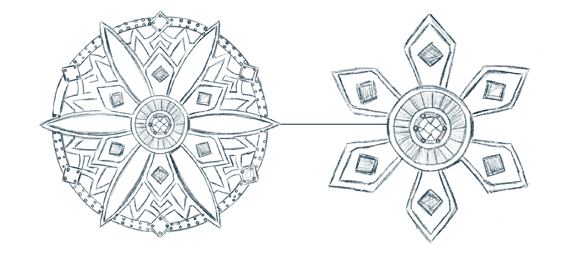 Formed by harmonious repetitions of the flower’s petals, it symbolizes the interconnected roles of Omani women and echoes traditional crafts such as sadu (the traditional Bedouin weaving) and embroidery.